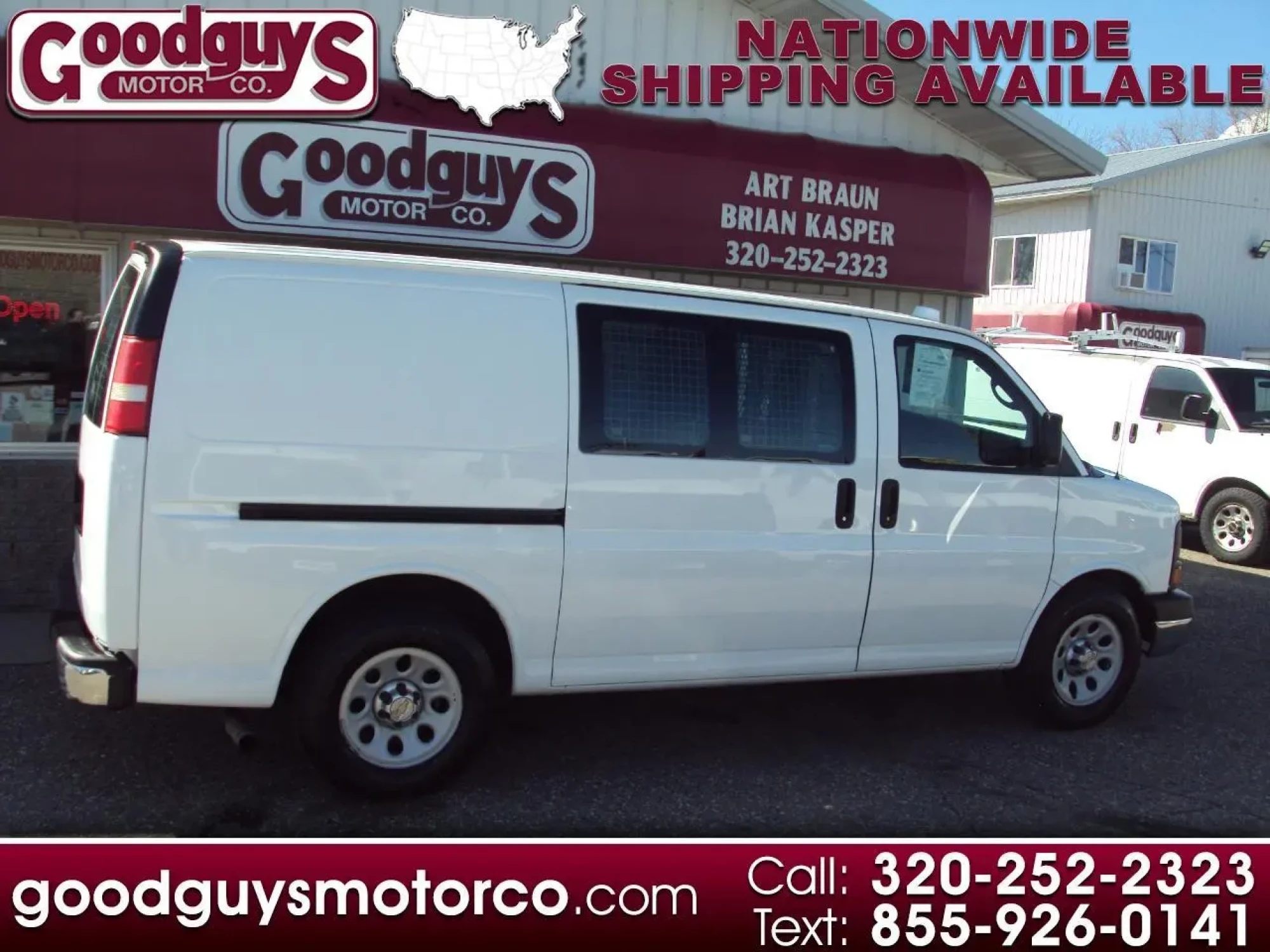 2012 Chevy Express AWD Cargo Van --> Vinyl Interior!! This Chevy AWD van has been fully serviced at Goodguys Motor Company and is ready to hit the road, fresh oil change, new battery, new wipers, replaced a exhaust gasket, all brakes have 80% remaining, tires are good, we did an alignment, new plus and wires. , AWD cargo van. Features include: 5.3L V8, automatic transmission, air conditioning, power locks, AM/FM stereo, 12v ports, bulkhead, rear bins, daytime running lights, auto headlights, info center, ABS brakes, traction control. Also included is a 30 day or 1,000 mile Powertrain warranty (work must be done in our shop). Don't let this one pass you by.. Give us a call or stop in for a test drive!For more information please visit our website at http://www.goodguysmotorco.com or call 320-252-2323 For more information please visit our website at http://www.goodguysmotorco.com or call 320-252-2323