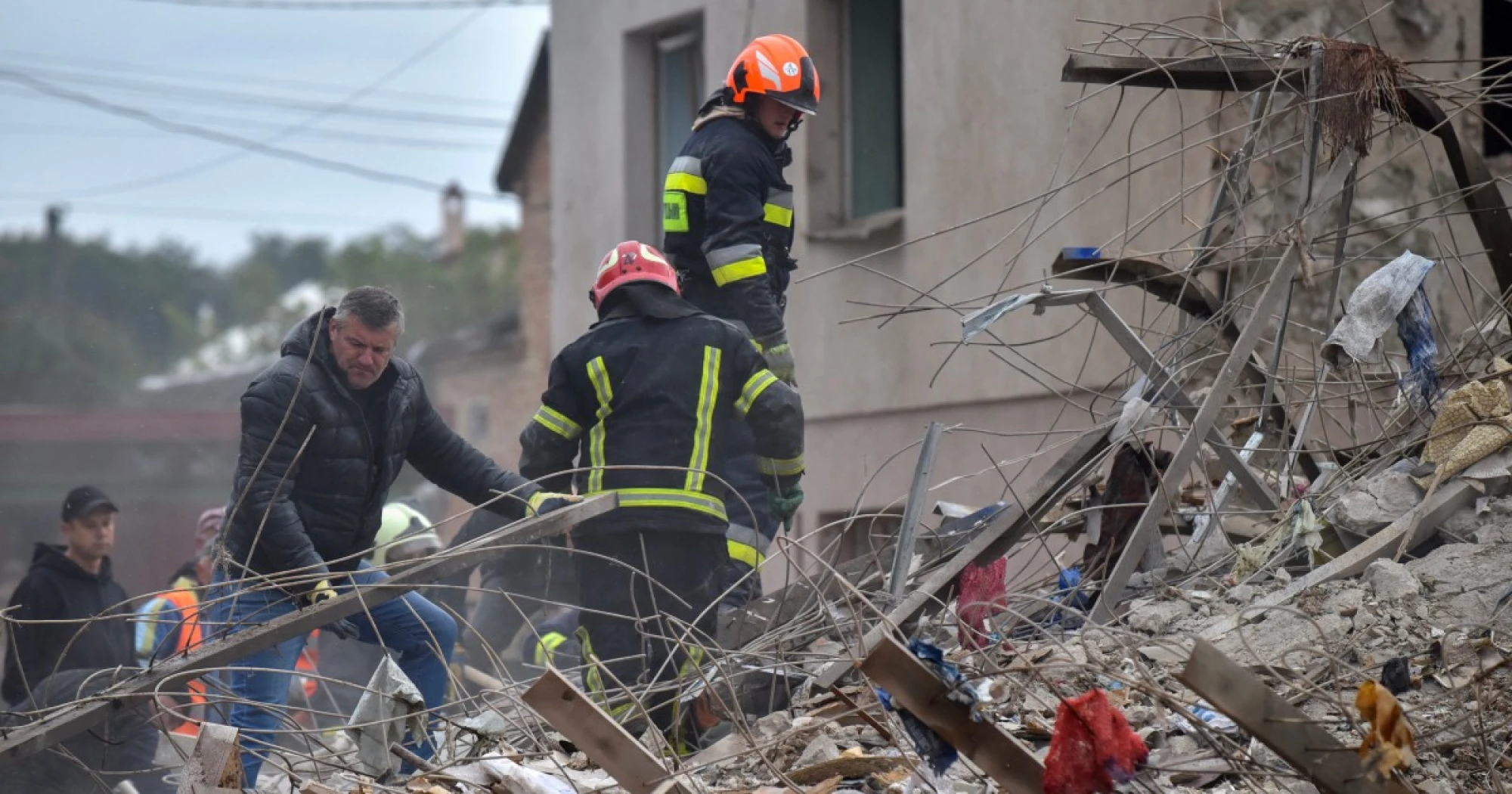Four of the victims in the overnight attacks were family members killed when their residential building in the western region of Lviv bordering Poland was destroyed, local prosecutors said.