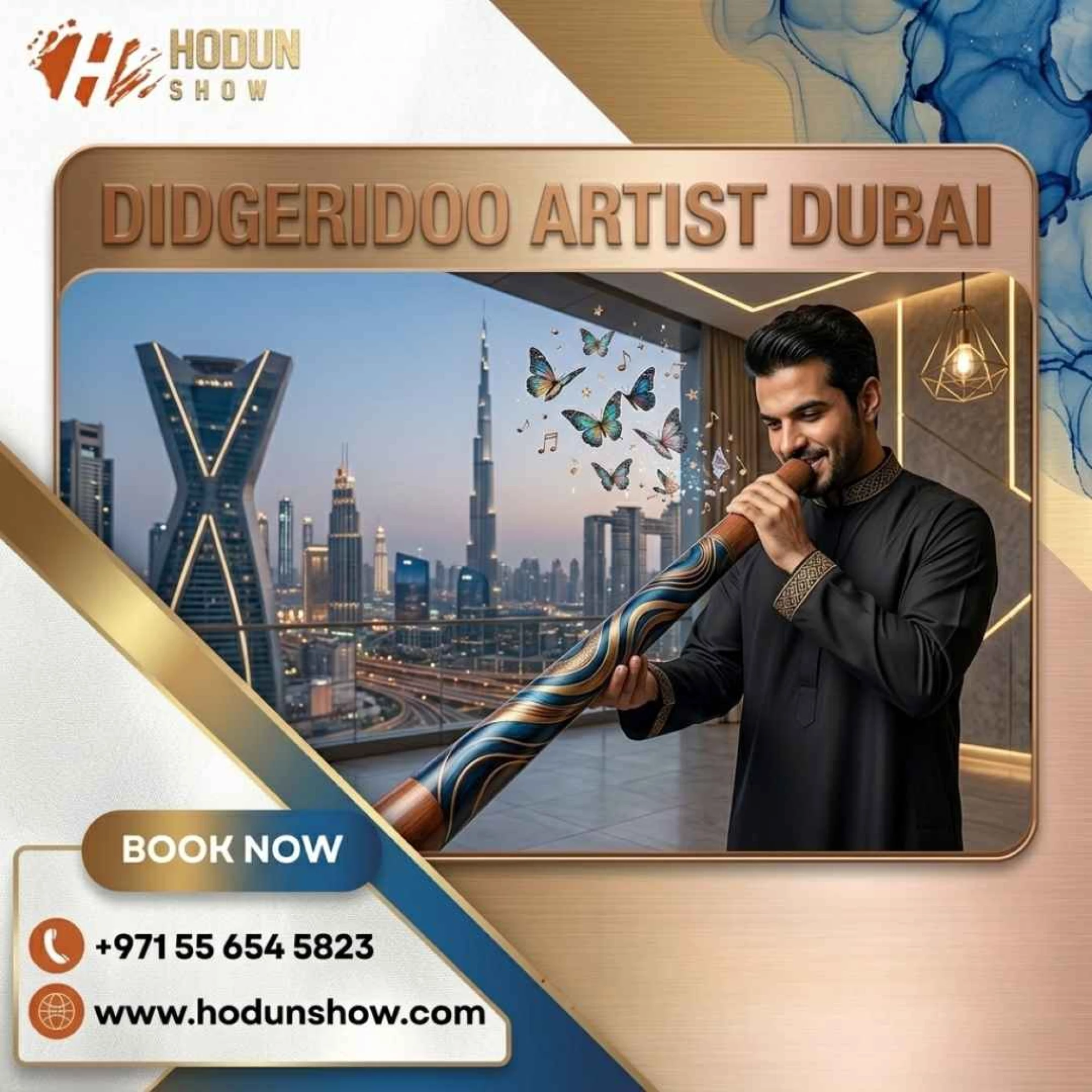 Hodun Show presents a Didgeridoo Artist Dubai performance that brings deep, rhythmic sound art to live events. The immersive experience blends ancient musical tradition with modern stage production. Ideal for cultural festivals, private shows, and corporate events, it creates a powerful atmosphere that connects audiences through unique acoustic vibrations and captivating storytelling through sound and rhythm.
