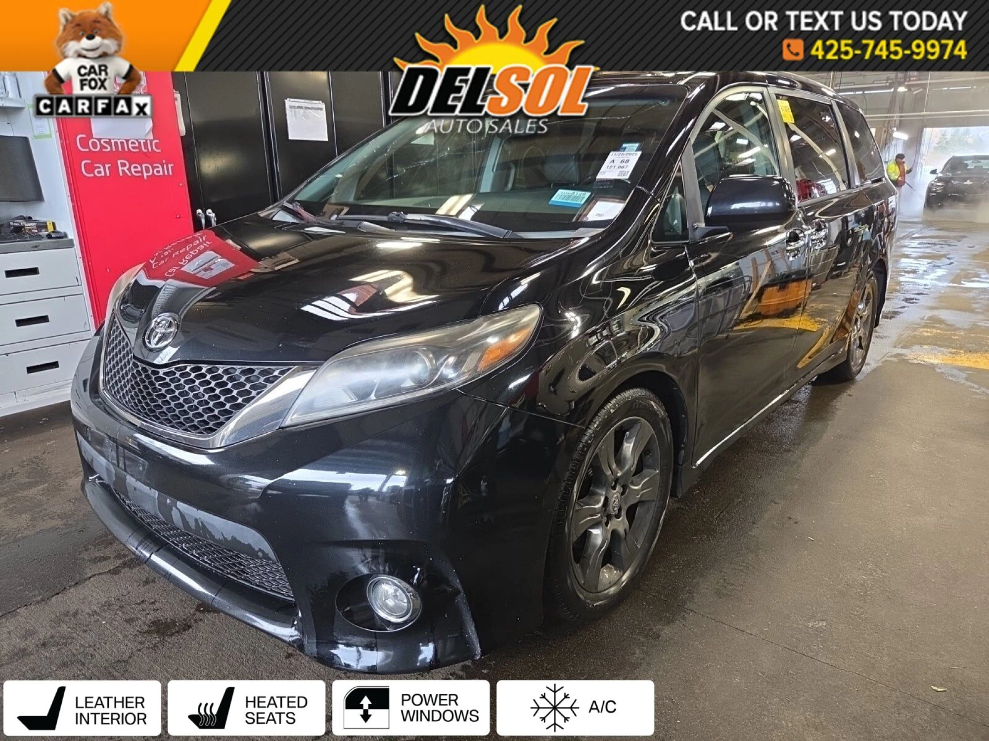 Del Sol Auto Sales is very proud to offer this handsome 2015 Toyota Sienna SE Serviced and Equipped with ALLOY WHEELSBACK UP CAMERABLUETOOTH WIRELESSHEATED FRONT SEATSPOWER DRIVER SEATUSB PORTSLOCAL VEHICLEGOOD SERVICE RECORDS80 POINT INSPECTION, FULL DETAIL, AND FRESH OIL CHANGE COMPLETED