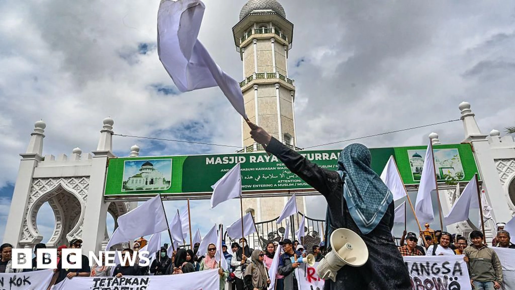 Watch LiveBritish Broadcasting CorporationHomeNewsSportBusinessInnovationCultureArtsTravelEarthAudioVideoLiveDocumentariesHomeNewsIsrael-Gaza WarWar in UkraineUS & CanadaUKUK PoliticsEnglandN. IrelandN. Ireland PoliticsScotlandScotland PoliticsWalesWales PoliticsAfricaAsiaChinaIndiaAustraliaEuropeLatin AmericaMiddle EastIn PicturesBBC InDepthBBC VerifySportBusinessExecutive LoungeTechnology of BusinessFuture of BusinessInnovationWatch DocumentariesTechnologyScience & HealthArtificial IntelligenceAI v the MindCultureWatch DocumentariesFilm & TVMusicArt & DesignStyleBooksEntertainment NewsArtsWatch DocumentariesArts in MotionTravelWatch DocumentariesDestinationsAfricaAntarcticaAsiaAustralia and PacificCaribbean & BermudaCentral AmericaEuropeMiddle EastNorth AmericaSouth AmericaWorld’s TableCulture & ExperiencesAdventuresThe SpeciaListEarthWatch DocumentariesNatural WondersWeather & ScienceClimate SolutionsSustainable BusinessGreen LivingAudioPodcast CategoriesRadioAudio FAQsVideoWatch DocumentariesBBC MaestroLiveLive NewsLive SportDocumentariesHomeNewsSportBusinessInnovationCultureArtsTravelEarthAudioVideoLiveDocumentariesWeatherNewslettersWatch LiveIndonesians raise white flags as anger grows over slow flood aid2 days agoShareSaveKelly Ng,Singapore,Riana Ibrahim,BBC Indonesian, JakartaandRaja Eben Lumbanrau,BBC Indonesian, JakartaShareSaveAFP via Getty ImagesPeople in Indonesia's Aceh province are raising white flags as a call for international solidarityFor weeks now, angry and distressed residents in Indonesia's westernmost province have been raising white flags over the state's slow response to a series of deadly floods.