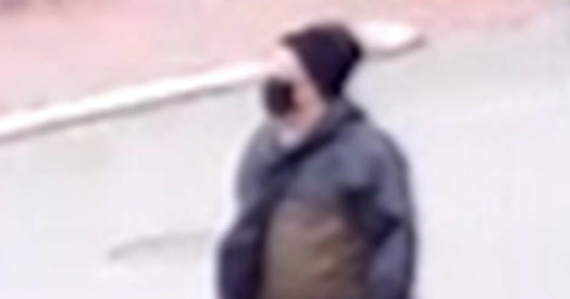 Like previously released images, the new enhanced photo shows a man with a black mask, a beanie and what appears to be a two-toned jacket. The shoulders and sleeves appear to be black or blue, while the torso area of the jacket is brown.