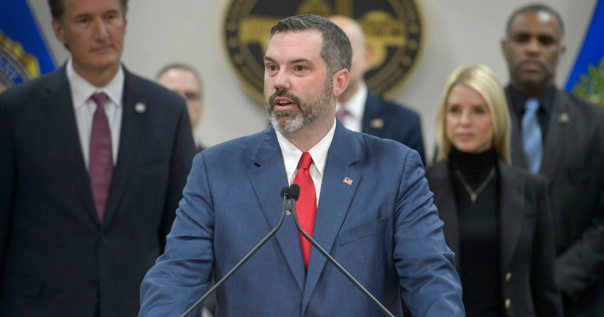 Erik Siebert, then-interim U.S. Attorney for the eastern district of Virginia, speaks as Attorney General Pam Bondi, right, and Virginia Gov. Glenn Youngkin, left, listen during a news conference at the Manassas FBI Field Office, in Manassas, Va., on March 27, 2025.Rod Lamkey / AP fileTrump on Friday unleashed an attack on Siebert, who was tasked with pursuing mortgage fraud charges against James, a longtime Trump foe.