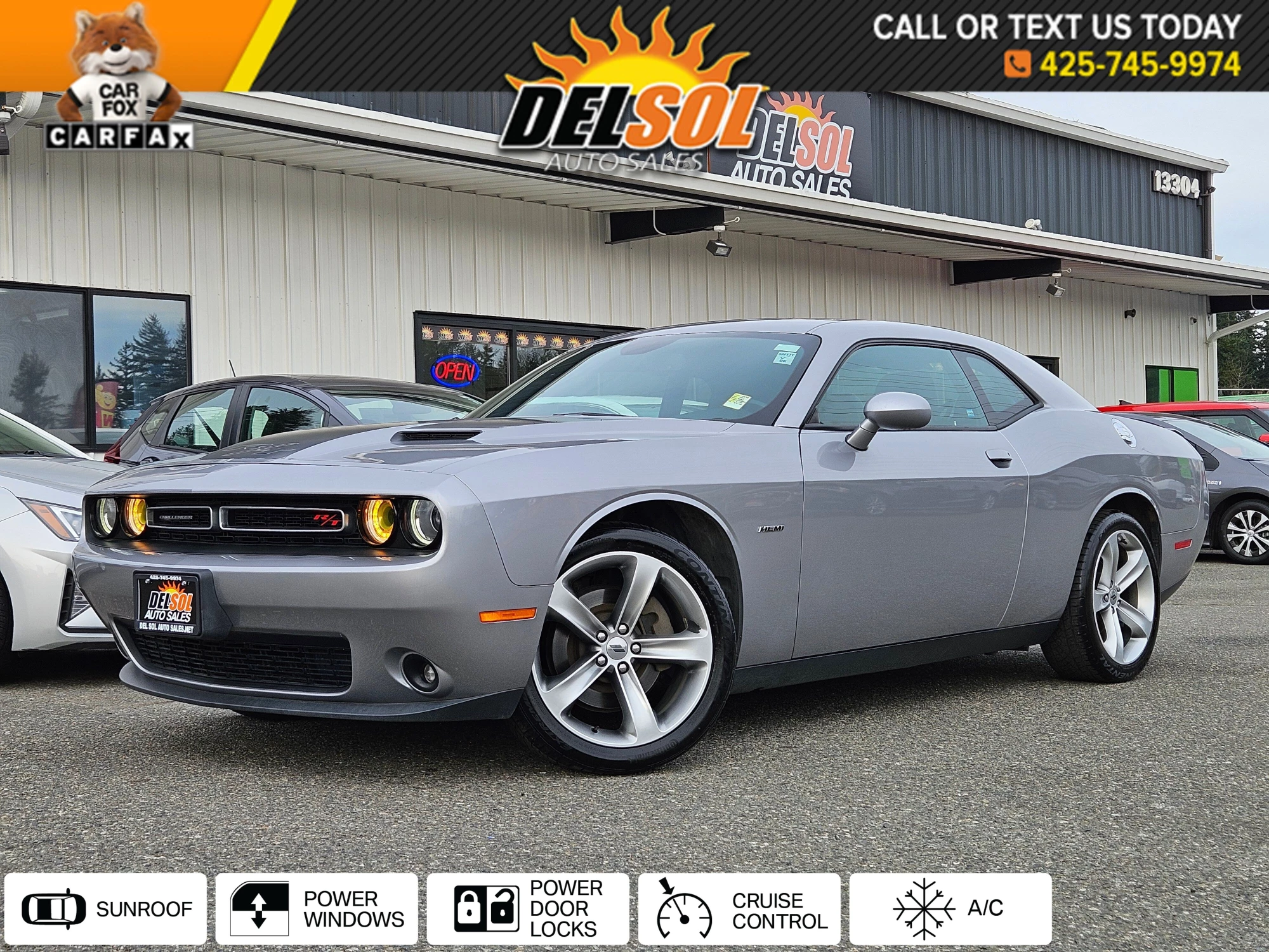 Del Sol Auto Sales is excited to offer this great 2017 Dodge Challenger R/T. Serviced and Equipped with BACK UP CAMERABLUETOOTH WIRELESSCLEAN CARFAXKEYLESS ENTRYLOW MILESMOONROOFNAVIGATIONPOWER DRIVER SEATPREMIUM SOUNDPREMIUM WHEELSPUSH BUTTON IGNITIONREMOTE STARTUSB PORTSLOCAL VEHICLEGOOD SERVICE RECORDS**80 POINT INSPECTION, FULL DETAIL, AND FRESH OIL CHANGE COMPLETED.