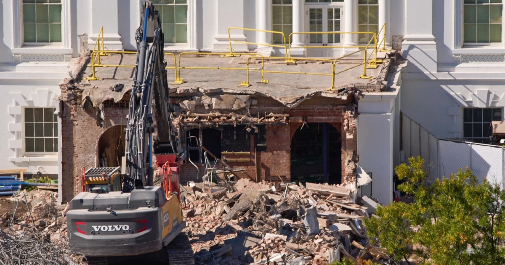 Almost all of the East Terrace, the colonnade that connected the White House main building to the outer East Wing structure, has also been torn down.