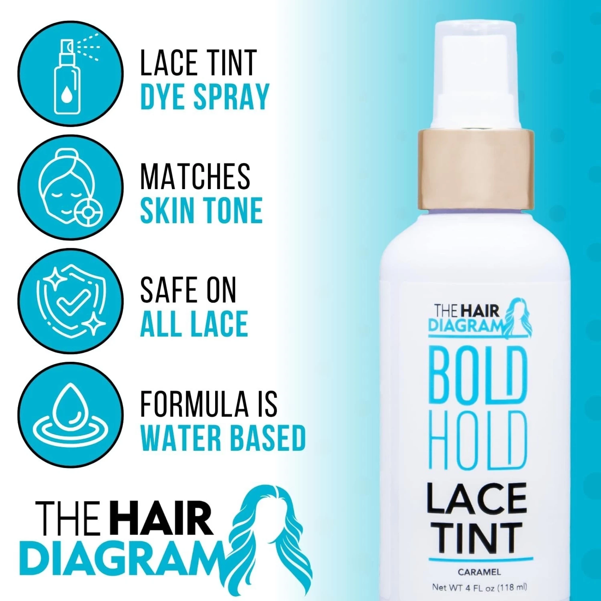 Bold Hold Lace Tint Spray 5.5oz Water-Based Wig Dye Safe for All Lace Front Wigs