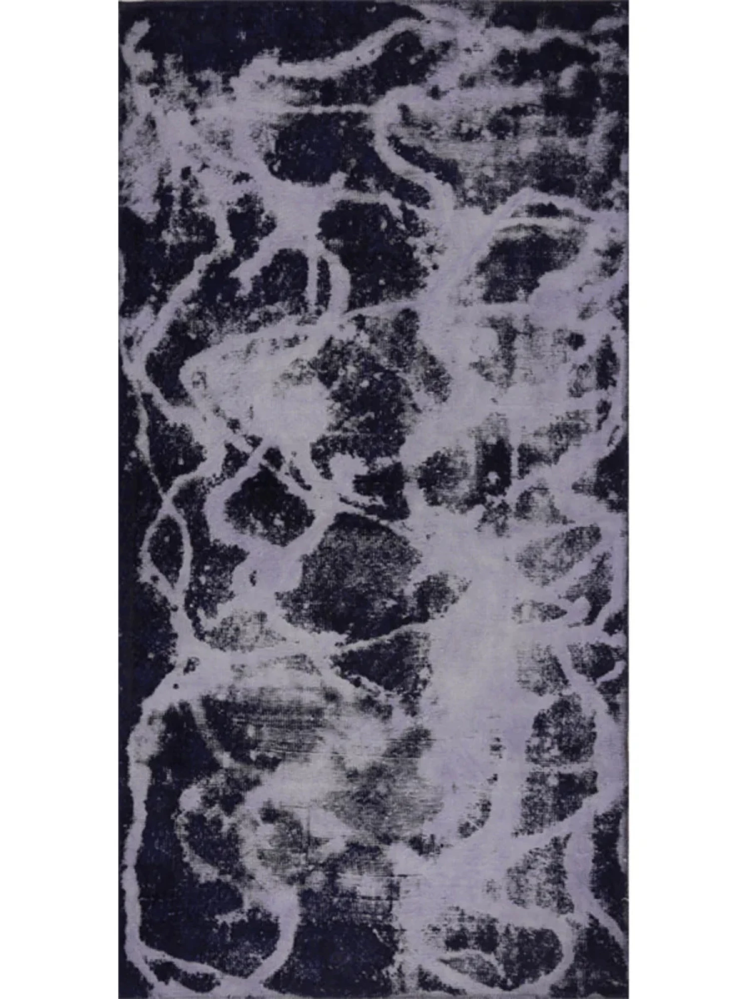 This one-of-a-kind 4x7 vintage Persian rug brings a sense of depth and artistry with its striking geometric design and distressed overdyed finish. Made from high-quality hand-knotted wool, it is both soft and durable, ensuring long-lasting beauty. The rich blend of purple, blue, and black hues adds a vibrant yet sophisticated charm to any space. This rug enhances interiors with a timeless appeal. Whether layered over hardwood floors or complementing a cozy setting, it adds character and warmth to your home.