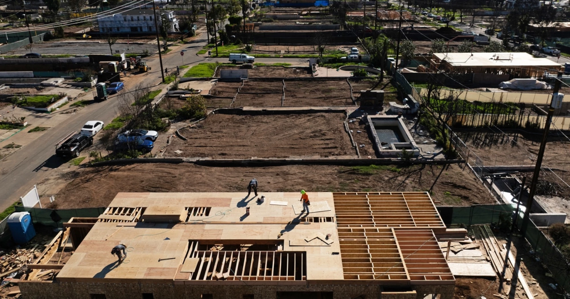 LOS ANGELES — On the first anniversary of the most destructive wildfires in the L.A. area, the scant home construction projects stand out among the still mostly flattened landscapes