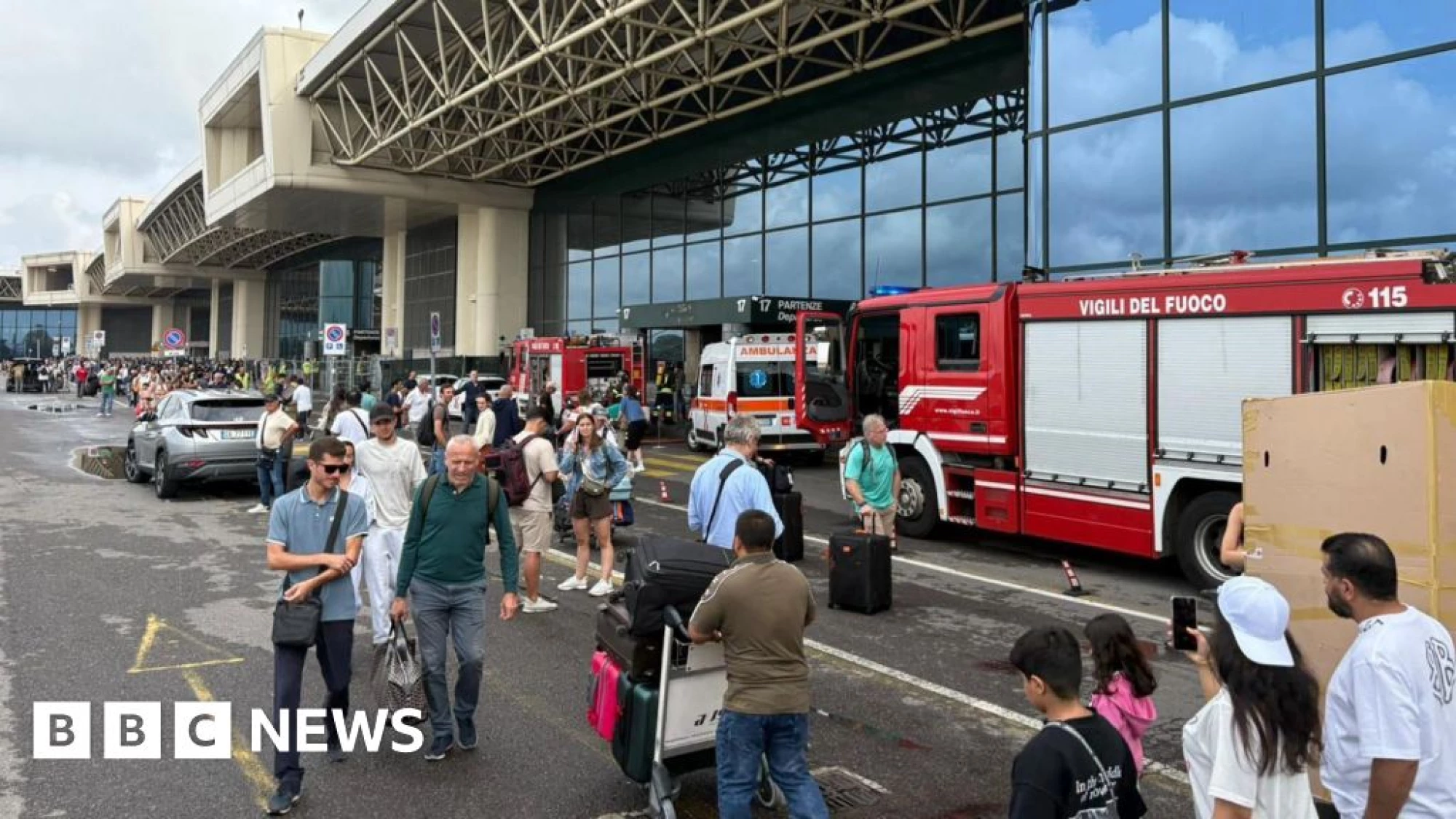 Watch LiveBritish Broadcasting CorporationHomeNewsSportBusinessInnovationCultureArtsTravelEarthAudioVideoLiveHomeNewsIsrael-Gaza WarWar in UkraineUS & CanadaUKUK PoliticsEnglandN. IrelandN. Ireland PoliticsScotlandScotland PoliticsWalesWales PoliticsAfricaAsiaChinaIndiaAustraliaEuropeLatin AmericaMiddle EastIn PicturesBBC InDepthBBC VerifySportBusinessExecutive LoungeTechnology of BusinessFuture of BusinessInnovationTechnologyScience & HealthArtificial IntelligenceAI v the MindCultureFilm & TVMusicArt & DesignStyleBooksEntertainment NewsArtsArts in MotionTravelDestinationsAfricaAntarcticaAsiaAustralia and PacificCaribbean & BermudaCentral AmericaEuropeMiddle EastNorth AmericaSouth AmericaWorld’s TableCulture & ExperiencesAdventuresThe SpeciaListEarthNatural WondersWeather & ScienceClimate SolutionsSustainable BusinessGreen LivingAudioPodcast CategoriesRadioAudio FAQsVideoLiveLive NewsLive SportHomeNewsSportBusinessInnovationCultureArtsTravelEarthAudioVideoLiveWeatherNewslettersWatch LiveMan sets fire to check-in area at Milan's Malpensa airport22 hours agoShareSaveTom McArthurBBC NewsShareSaveWatch: Check-in desk set alight in Milan Malpensa airport as man detainedA busy Italian airport has been partially evacuated after a man set fire to a check-in area.