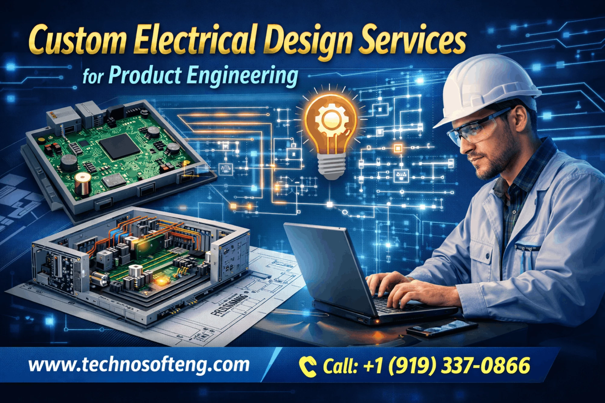 Technosoft Engineering offers end-to-end electrical design services including circuit design, panel layouts, and compliance support to power innovative product engineering solutions.
