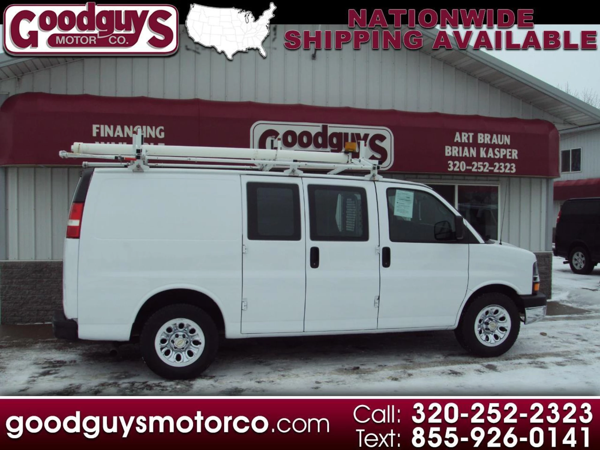 2012 Chevy Express AWD Cargo Van --> Cloth Interior!! This Chevy van has been fully serviced at Goodguys Motor Company and is ready to hit the road, fresh oil change , new battery, new air filter, new headlights, 2 new outer tie rod ends, new rack and pinion, new wiper blades. Features include: 5.3L V8, automatic transmission, air conditioning, AM/FM/ stereo, power locks, cruise control, tilt wheel, daytime running lights, auto headlights, info center, ABS brakes, traction control, rear shelves, bulkhead, dual drop down ladder rack. Also included is a 30 day or 1,000 mile Powertrain warranty (work must be done in our shop). Don't let this one pass you by.. Give us a call or stop in for a test drive! For more information please visit our website at http://www.goodguysmotorco.com or call 320-252-2323 For more information please visit our website at http://www.goodguysmotorco.com or call 320-252-2323