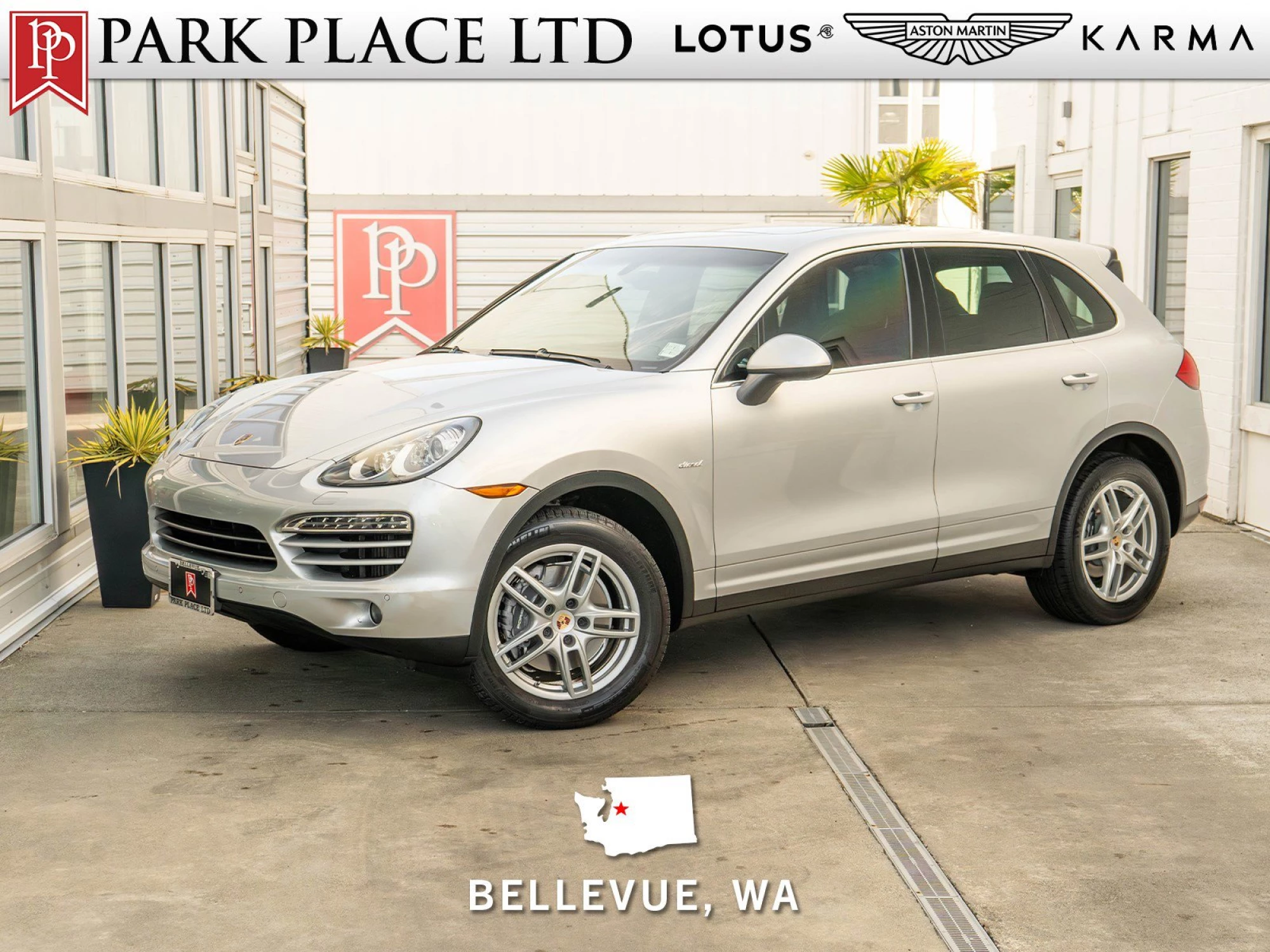 2013 Porsche Cayenne Diesel * $75,714 MSRP With $18,990 in Factory Options * Classic Silver Metallic Over Black Interior * Premium Package, Bose Audio Package, Panoramic Roof Factory Options * Premium Package * PCM on the key remote * Panoramic Roof System * Front Seat Ventilation * Bi-Xenon Lighting System * Porsche Dynamic Light System (PDLS) and headlight cleaning system * Front Heated Seats * Comfort Lighting Package (PP6) * Reversing Camera Including Front & Rear ParkAssist * Automatically Dimming Inside Rear View Mirror * Bose Audio Package * Panoramic Roof System * Reversing Camera w/ParkAssist Front and Rear * 19-Inch Cayenne Turbo Wheels * Lane Change Assist * Extended LED Comfort Lighting * Classic Silver Metallic * Trailer Hitch w/o Tow Ball * Light Comfort Package w/Memory * Wheel Hub Cover w/Colored Porsche Crest Additional Information * Books and Manuals * Service Invoices * Window Sticker Standard Features * 3.0-Liter V6 Turbodiesel * 240 Horsepower/406 Lb-Ft of Torque * 8-Speed Tiptronic S Automatic Transmission * Homelink * Cruise Control * Front and Rear Foglights * LED Brake Lights * Power Tilt and Telescoping Steering Wheel * Alcantara Headliner * Panoramic Sunroof * Dimming Side Mirrors with Power Folding * Deep Tinted Glass * Lip Spoiler * Cruise Control * Leather Door Trim Insert * Cargo Cover * Cooled Storage Boxes * Bluetooth * 2 Seatback Storage Pockets For more information on this 2013 Porsche Cayenne Diesel or any of our 30+ SUVs, Trucks, Crossovers and All-Wheel drive cars always in stock, contact one of our friendly and knowledgeable sales consultants today or always feel free to drop by our 40,000 sq ft of Indoor Showrooms in Bellevue, WA - Home to the West Coast's most exciting inventory of Luxury, Exotic, Sports and Collectible Cars. With 200+ Always On Site, Nobody Has What We Have!