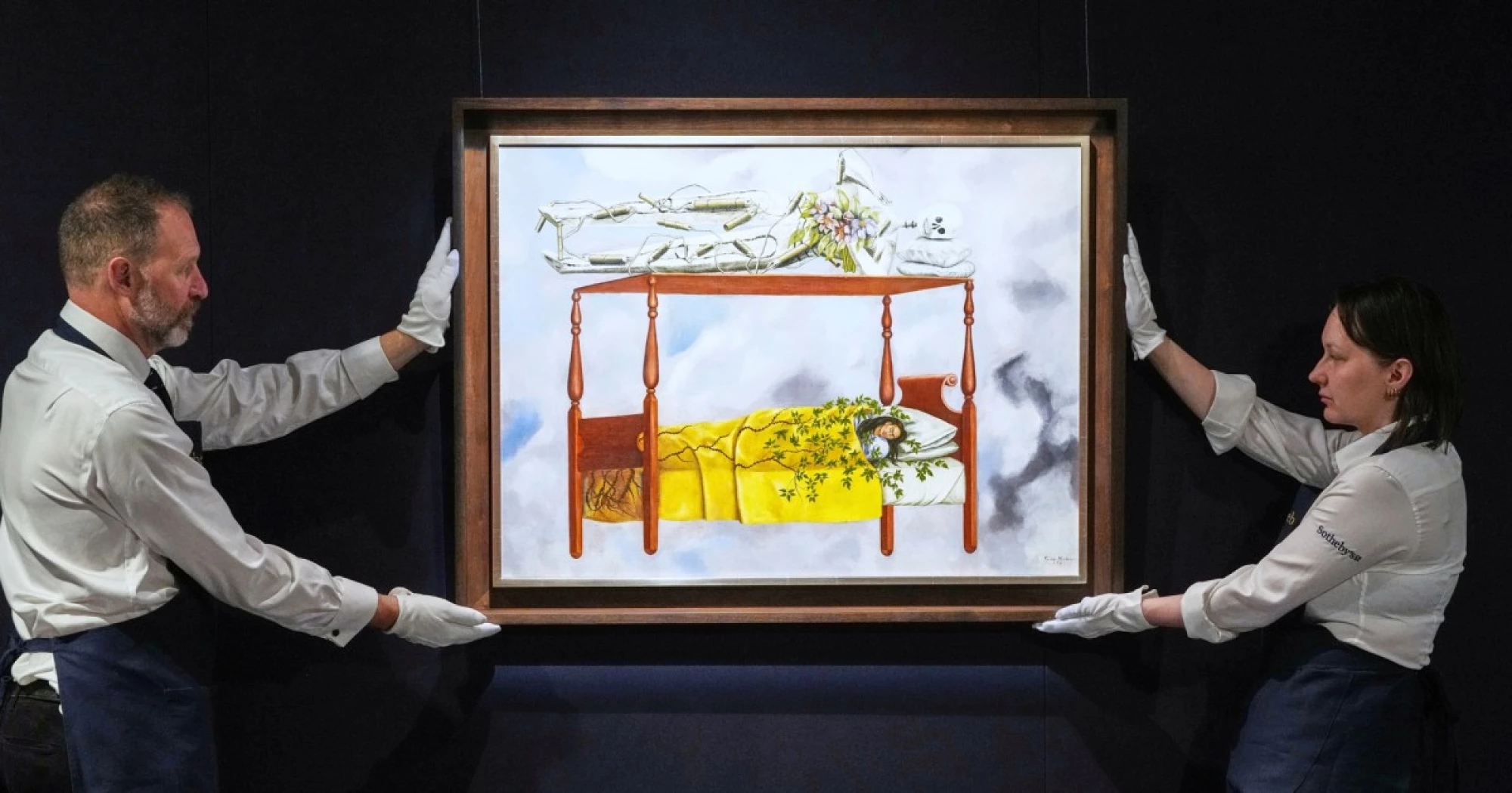 The painting of Kahlo asleep in a bed — titled “El sueño (La cama)” or in English, “The Dream (The Bed)” — surpassed the record held by Georgia O’Keeffe’s “Jimson Weed/White Flower No. 1,” which sold for $44.4 million in 2014.