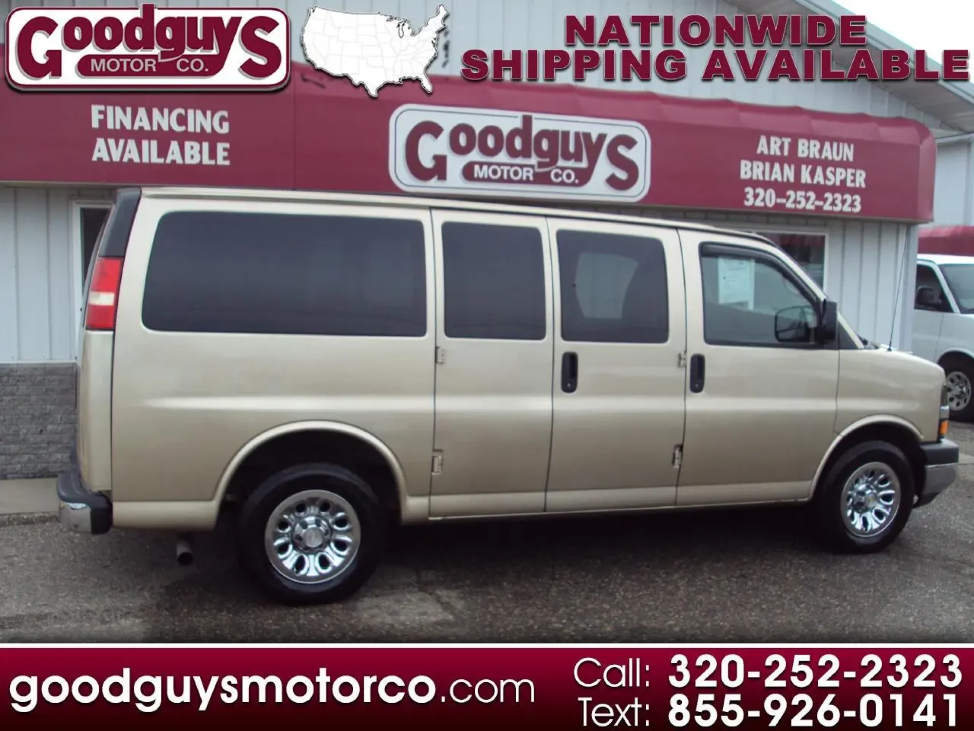 2011 Chevy Express AWD 8 Passenger Van LT --> Cloth Interior!! This Chevy van has been fully serviced at Goodguys Motor Company and is ready to hit the road. We changed oil, front brakes have 50% remaining and the rear brakes have 55% remaining, tire are good with 11/32 tread, battery is 12/24. Features include: 5.3L V8, automatic transmission, air conditioning, AM/FM/CD stereo, power mirrors, daytime running lights, auto headlights, cruise control, tilt wheel, info center, ABS brakes, rear a/c & heat climate control, traction control, power locks, power windows, keyless remote, trailer hitch w/ brake controller,. Also included is a 30 day or 1,000 mile Powertrain warranty (work must be done in our shop). Don't let this one pass you by.. Give us a call or stop in for a test drive!For more information please visit our website at http://www.goodguysmotorco.com or call 320-252-2323 For more information please visit our website at http://www.goodguysmotorco.com or call 320-252-2323