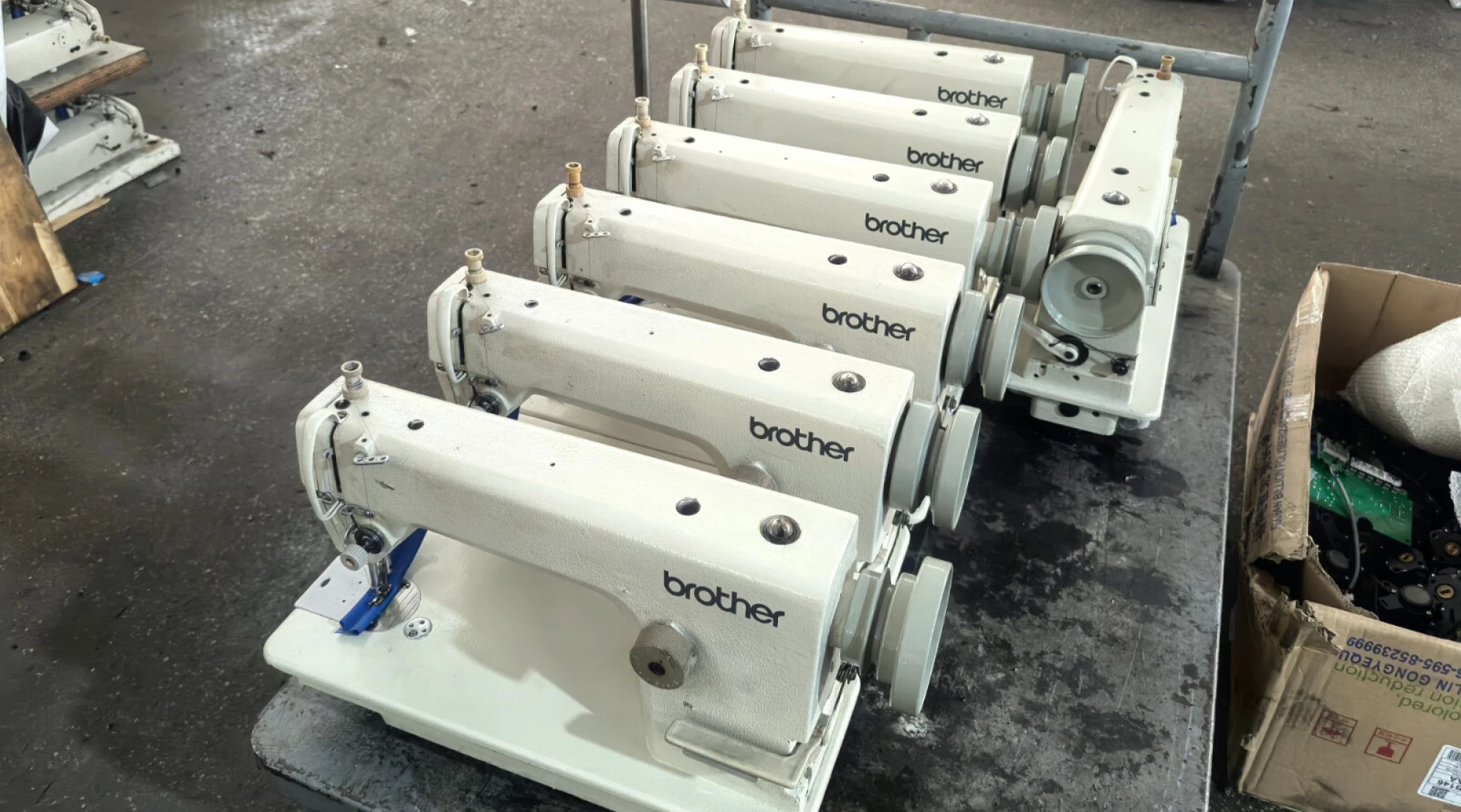 - Brother 101 - 100 Units straight 80% new, new table stand +new servo motor + new accessories, complete set exw US$110/set