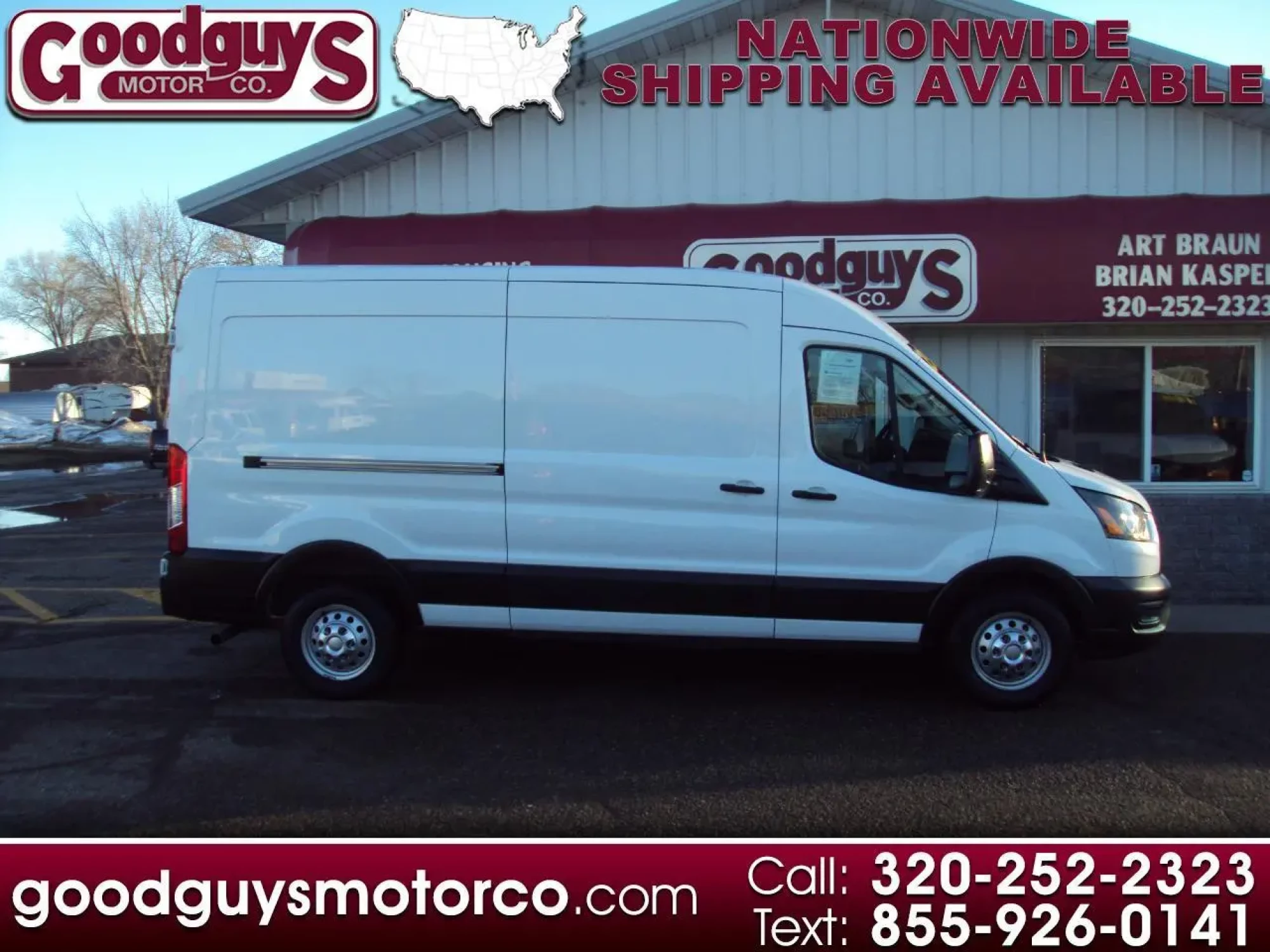 2023 Ford AWD Mid-roof Cargo Van --> Vinyl Interior!! This Ford AWD van has been fully serviced at Goodguys Motor Company and is ready to hit the road, fresh oil change, battery good, brakes all have 75% remaining, 4 new tires, serviced front and rear diffs and t-case, , ,. , AWD mid roof cargo van. Features include: 3.5L V6, automatic transmission, air conditioning, power locks, power windows, power mirrors, tilt wheel, AM/FM stereo, 12v and usb ports, back up camera, daytime running lights, lane keeping system, 3.73 limited slip axle, forward collision warning system, side-wind stabilization, sos post crash alert system, hill start assist, rain sensing wipers, auto headlights, info center, ABS brakes, traction control.. Also included is a 30 day or 1,000 mile Powertrain warranty (work must be done in our shop). Don't let this one pass you by.. Give us a call or stop in for a test drive!For more information please visit our website at http://www.goodguysmotorco.com or call 320-252-2323 For more information please visit our website at http://www.goodguysmotorco.com or call 320-252-2323
